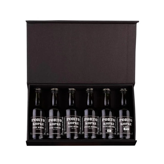 A curated selection showcasing Tawny, Ruby, White and aged Ports. Each miniature reveals Kopke’s hallmark balance of richness, freshness and complexity. Expect notes of dried fruit, nuts, caramel, spice and ripe berries across the range.
