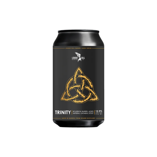 Trinity is a bold and velvety Imperial Oatmeal Stout, aged for a full year in bourbon barrels that previously held Irish whiskey from Boann Distillery. Brewed in Sligo by Lough Gill Brewery, it’s a rich, contemplative stout that layers roasted malt complexity with deep barrel character.